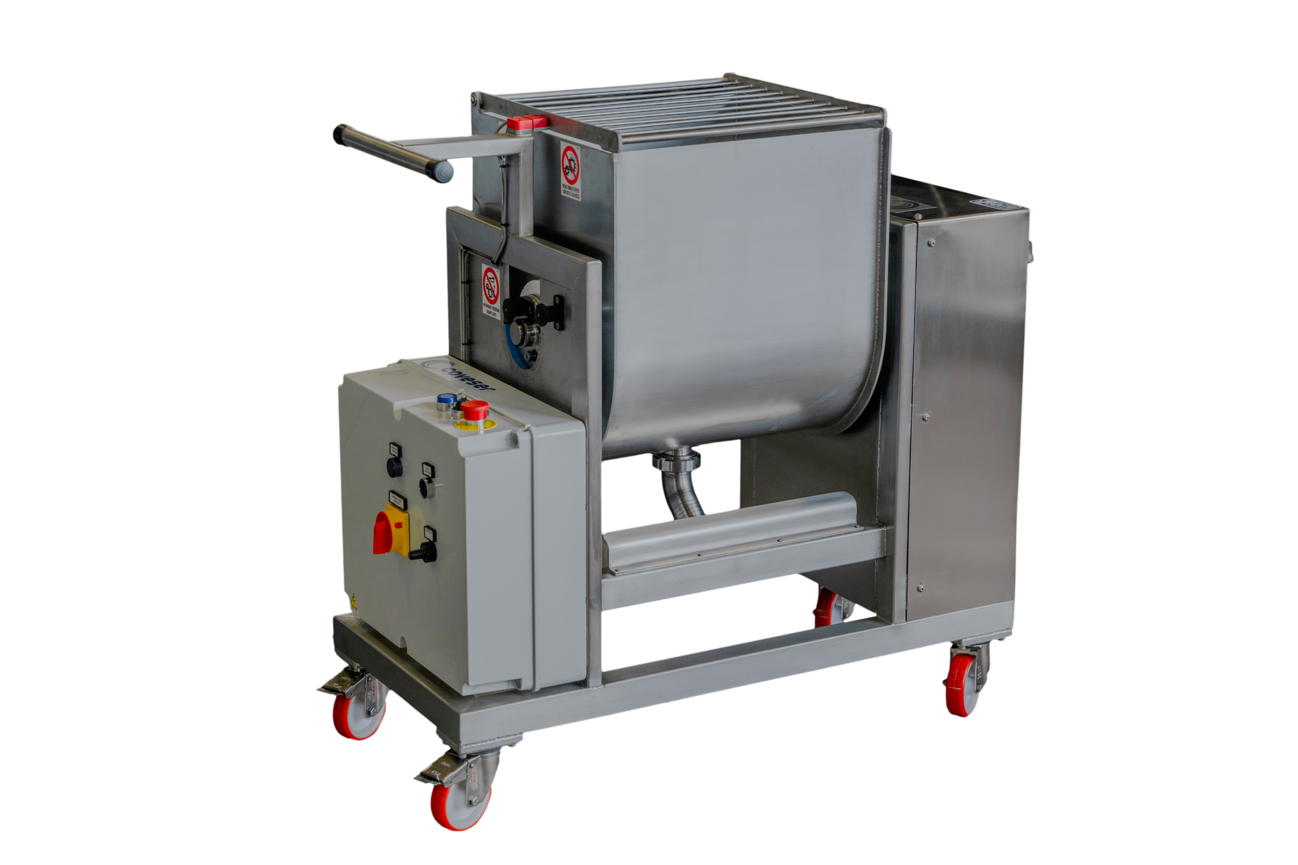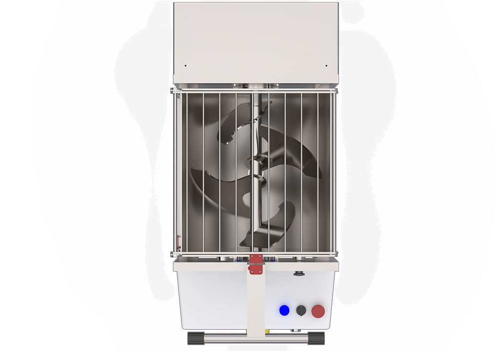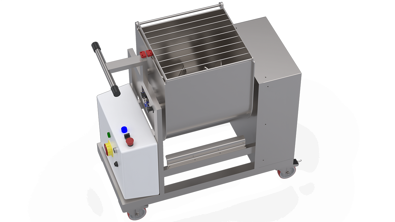 A practical tank tipping system allows for fast product discharge with minimal waste. An integrated safety micro-switch ensures the mixer stops immediately in the event of accidental opening, safeguarding the operator during use.